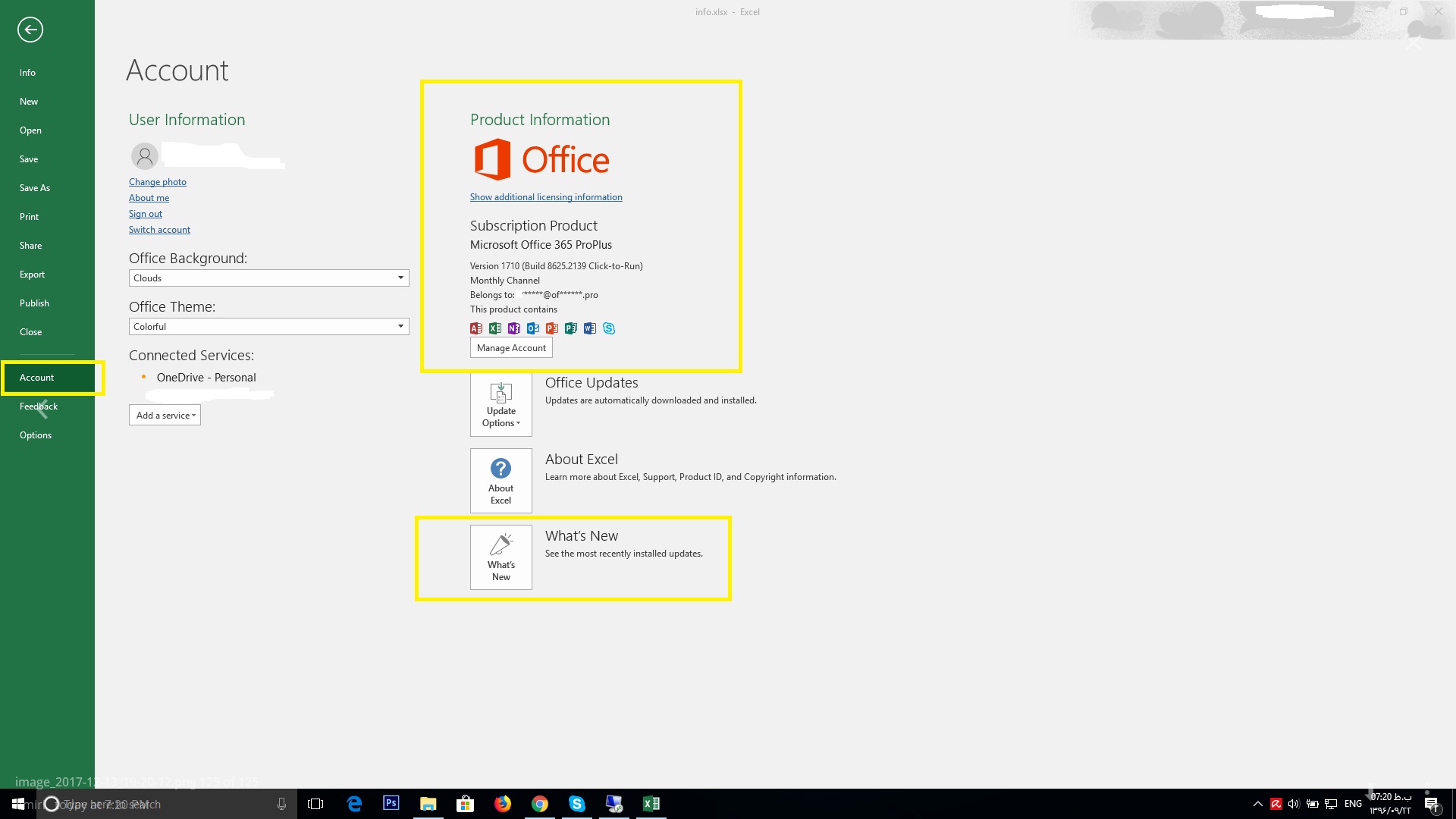 اگر روی این عبارت کلیک کنید خواهید دید که ورد یا اکسل شما دارای امکانات اضافی نسبت به آفیس ۲۰۱۶ می باشد.و با هر آپیدت این بخش به شما اطلاع رسانی خواهد کرد که چه امکاناتی اضافه شده است.