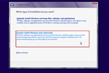 اگر که شما می خواهید یک ویندوز جدید و تازه بر روی سیستم خود نصب کنید. پس گزینه دوم یعنی Custom را انتخاب می کنیم.